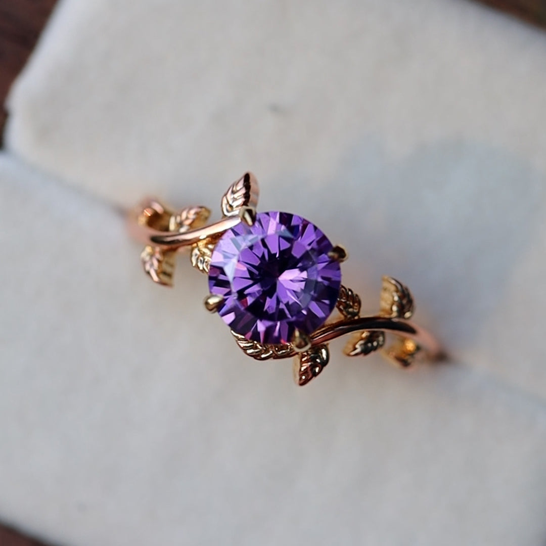 Nature-Inspired Birthstone & Diamond Engagement Ring